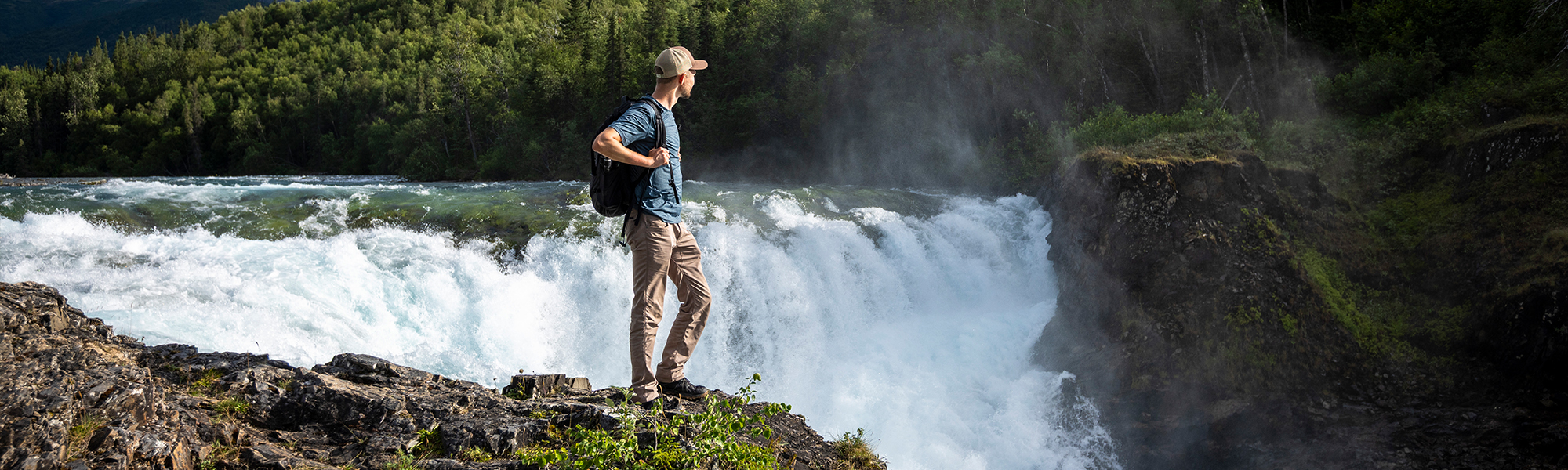 Returning to Port Alsworth in early afternoon leaves plenty of time for more exploration. After all, the sun doesn’t set around here until 11 p.m. So, reuniting with my parents, my mom and I revisit the Tanalian trails, this time choosing Falls and Lake Trail. The path parallels yesterday’s Beaver Pond Loop Trail for 2 miles reaching the famous Tanalian Falls, a 30-foot thundering waterfall along the Tanalian River. For the more adventurous, the path continues past the waterfall and terminates at Lake Kontrashibuna at the foot of Tanalian Mountain.