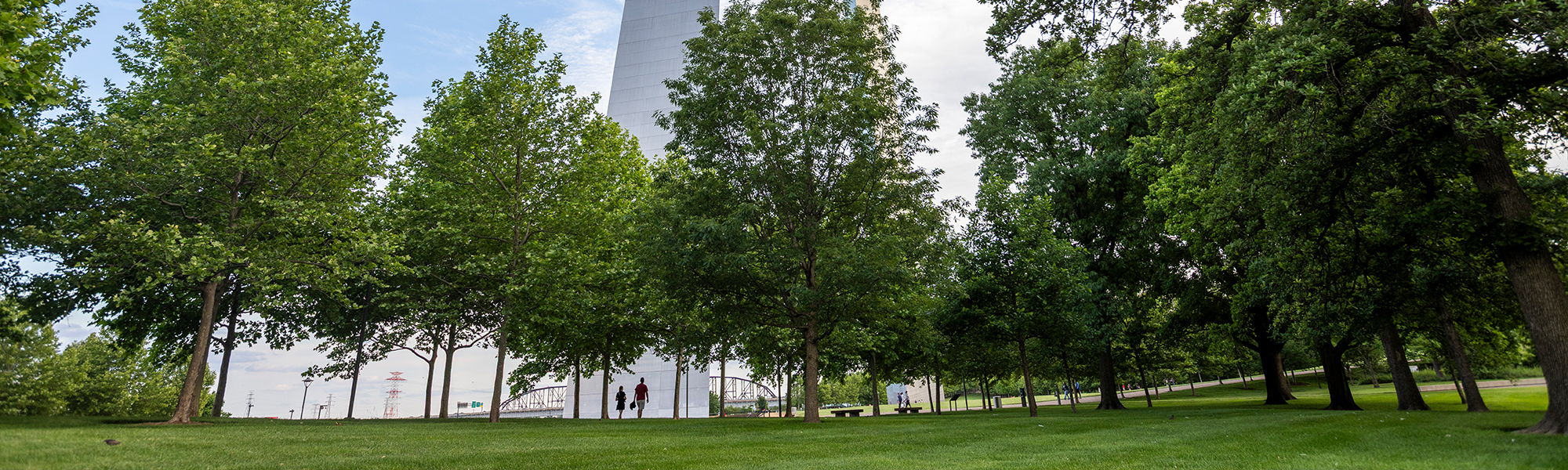 Bald cypress and London plane trees line the walkways in mathematical precision. Freshly mowed lawns glow in the afternoon light. Ponds ripple with the activity of ducks and geese. And everywhere we walk, the Arch presides as a centerpiece not to be forgotten.